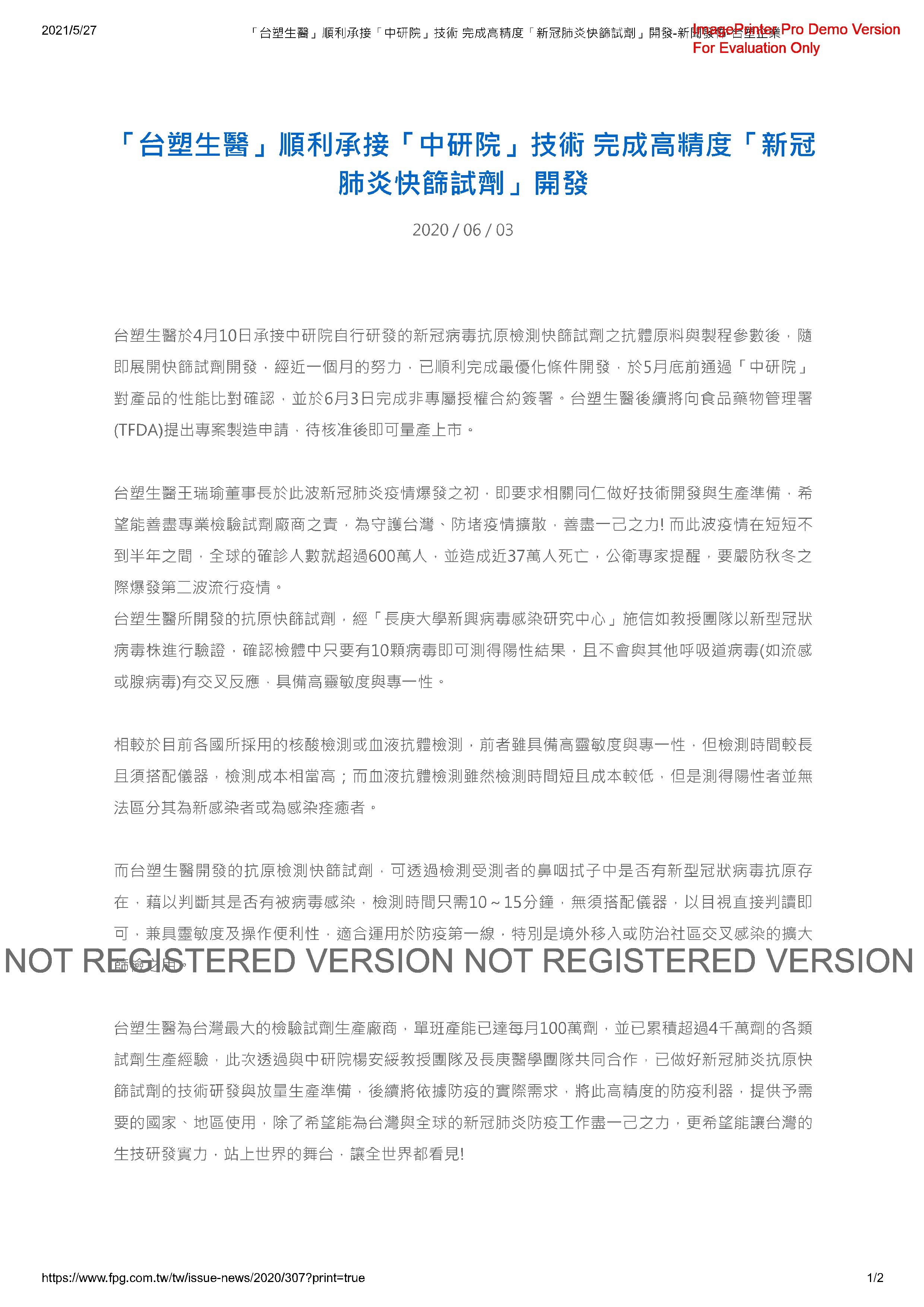 線上詢價: 台塑迅知新型冠狀病毒抗原快速檢驗試劑